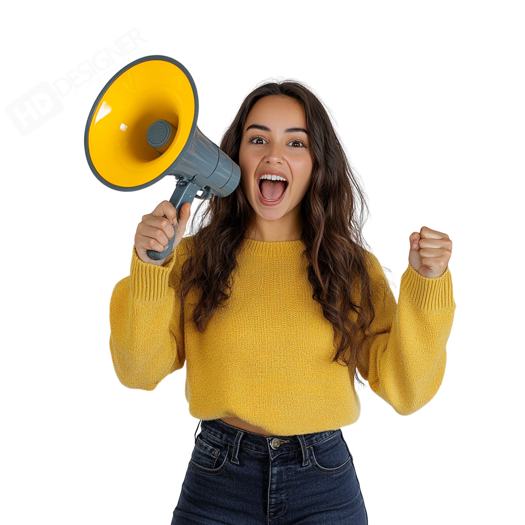 Mulher com megafone – anuncio